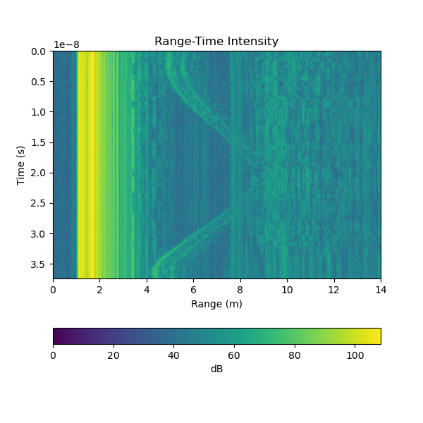 The project consisted of a few phases, the first of which was writing the python program to interact with the PulsON 440. The data gained from the radar was then plotted on a range-time intensity plot, with range on the x-axis and time on the y-axis.